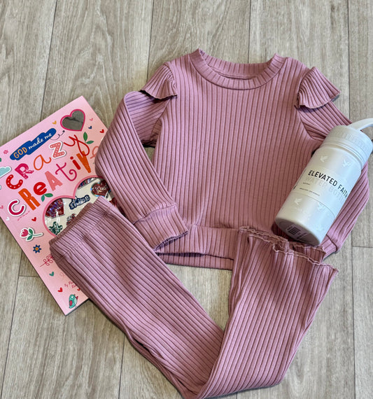 Rose Ribbed Top & Flare Leggings