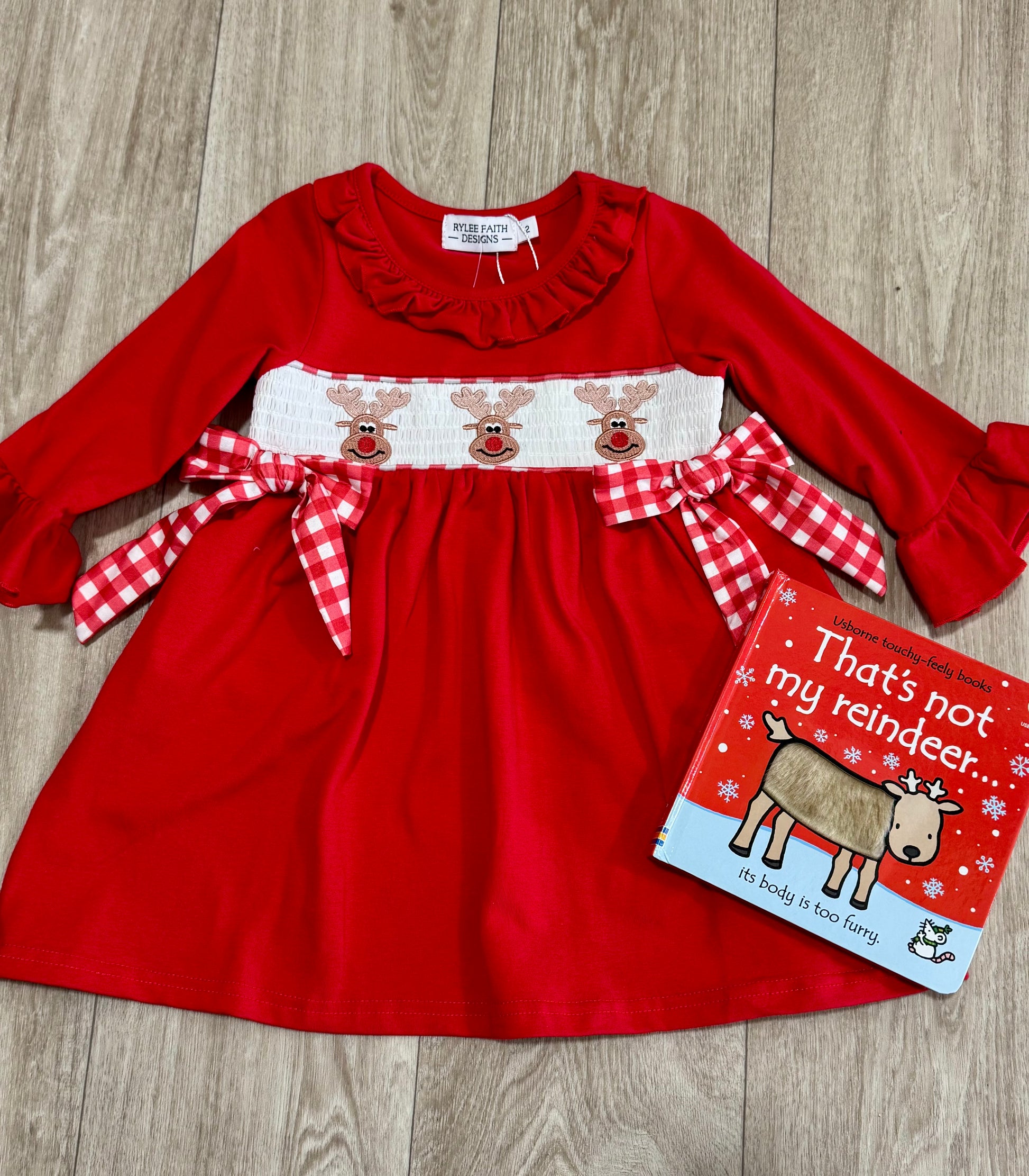 This stunning Christmas Bow Red Girls Dress is the perfect addition to your little one's holiday wardrobe. Made with festive red fabric and adorned with a festive bow, this dress will make her stand out at any holiday event. Spread holiday cheer with this beautiful dress!