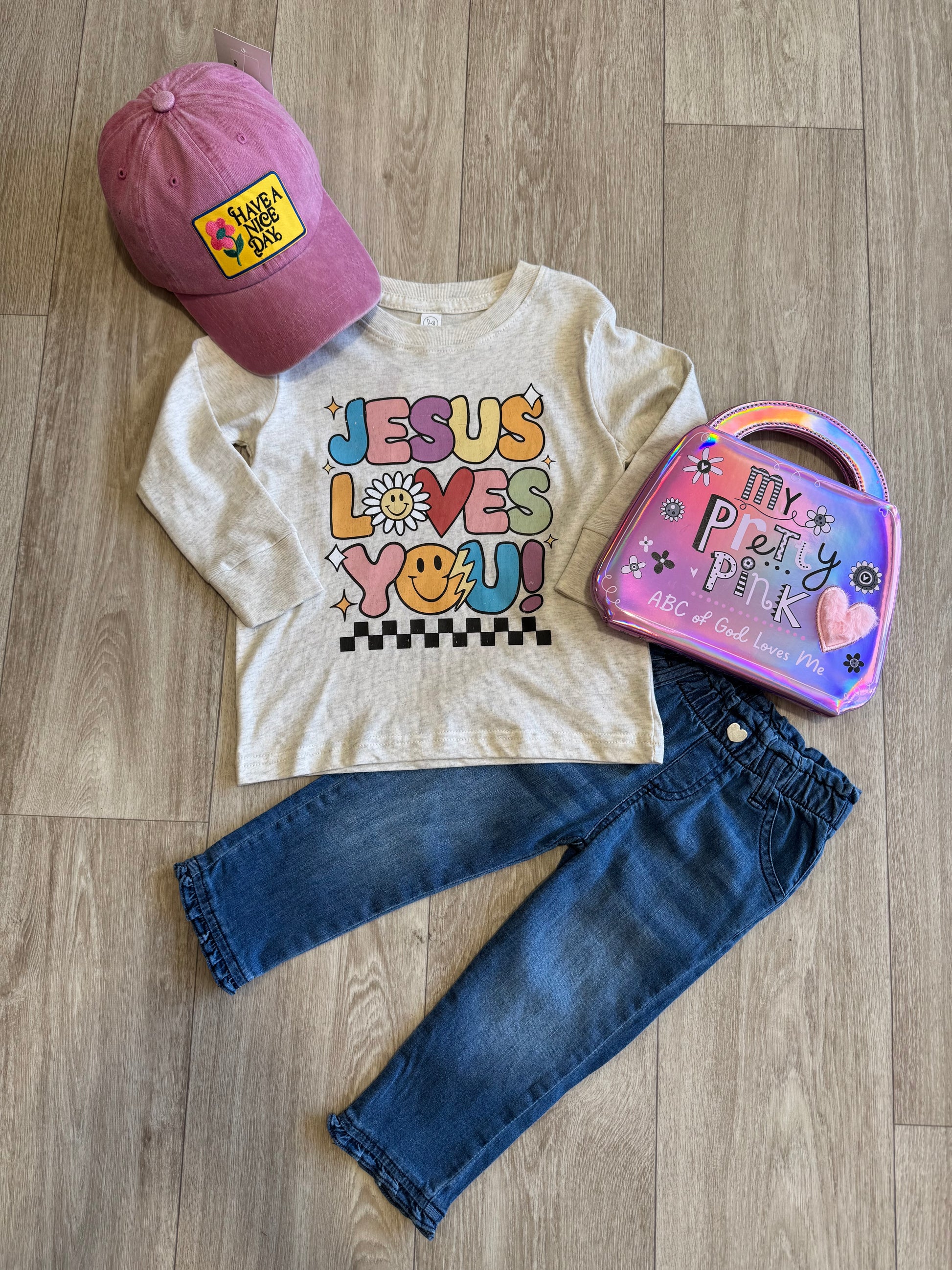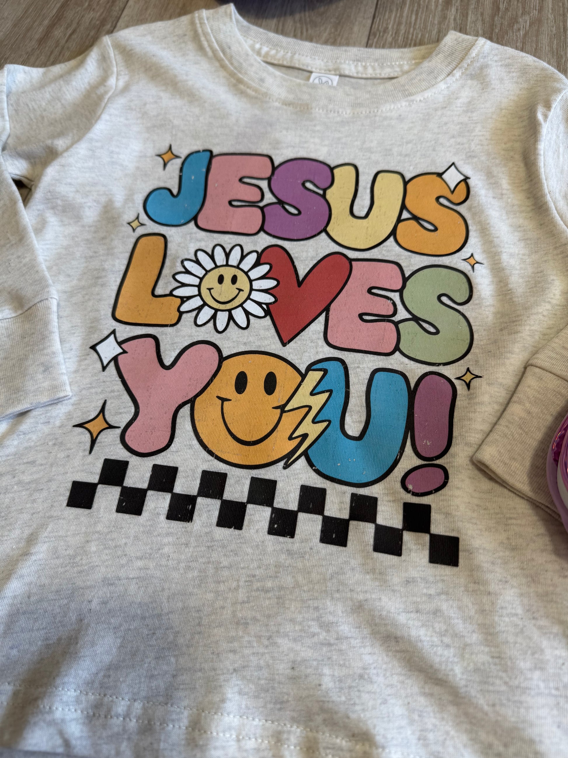 Wrap your little one in love with our "Jesus Loves You" toddler t-shirt! Featuring a sweet and timeless message, this adorable tee is perfect for all seasons. With its long sleeves, it's ideal for those crisp fall days, offering both warmth and style. Made from soft, breathable fabric, this shirt ensures all-day comfort for your active toddler while sharing a message of love and faith.