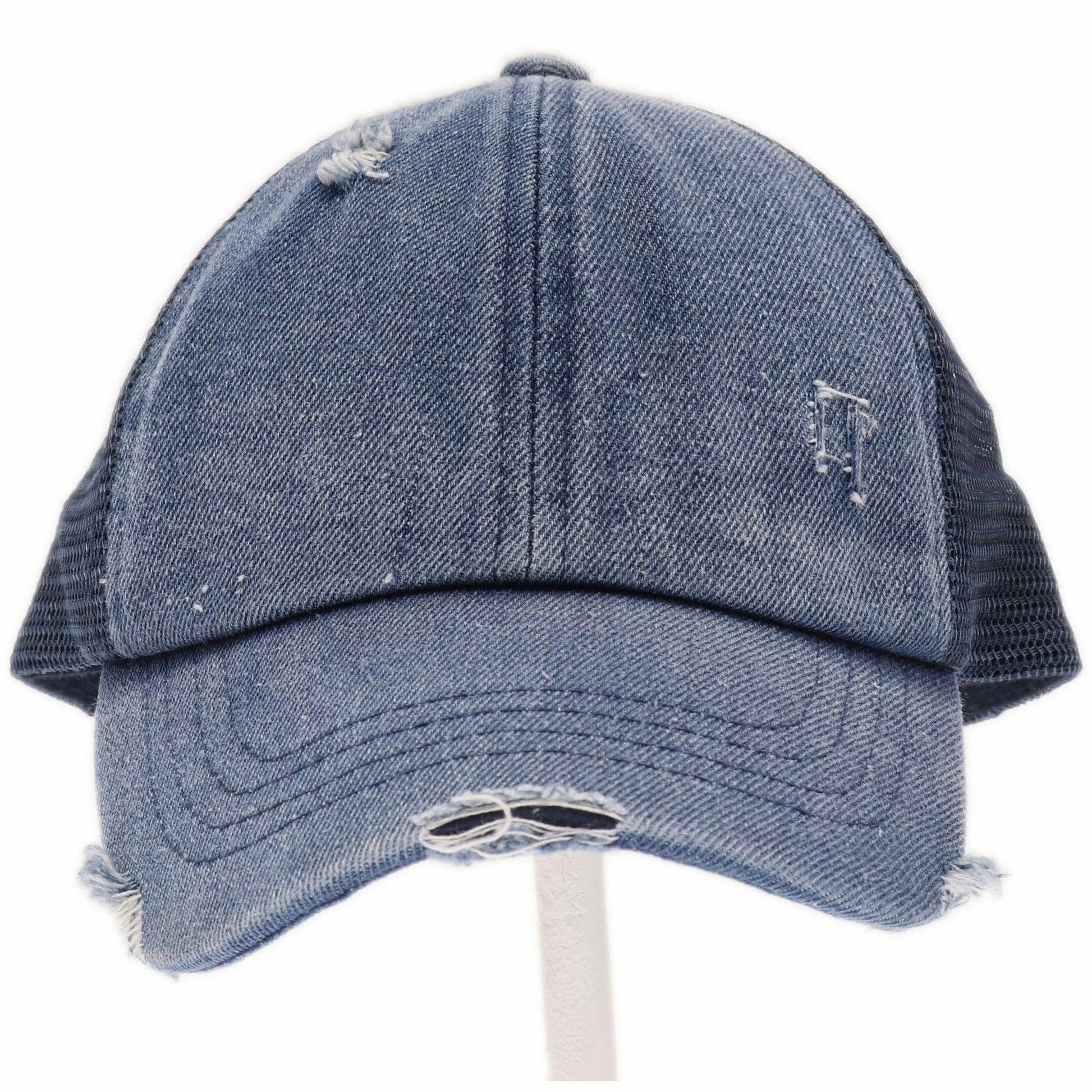 Kids Distressed Criss-Cross Ponytail Ball Cap