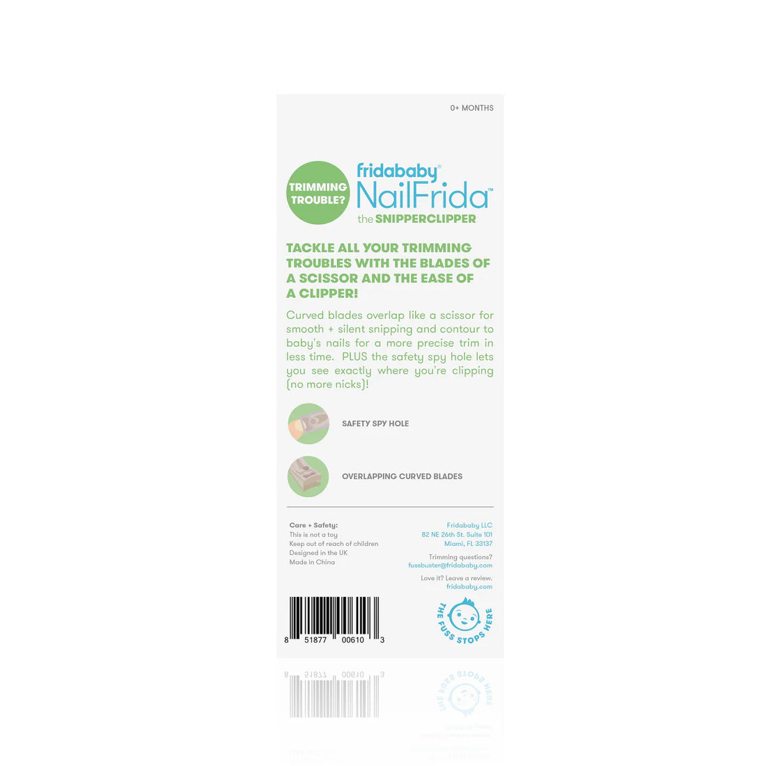 Tackle all of your trimming troubles without nicking baby's sensitive skin with the NailFrida SnipperClipper. See what you're snipping through the safety spyhole and nail that mani/ pedi every time. NailFrida's specially curved blades mimic the shape of a baby scissor and are uniquely designed for smooth and silent snipping.