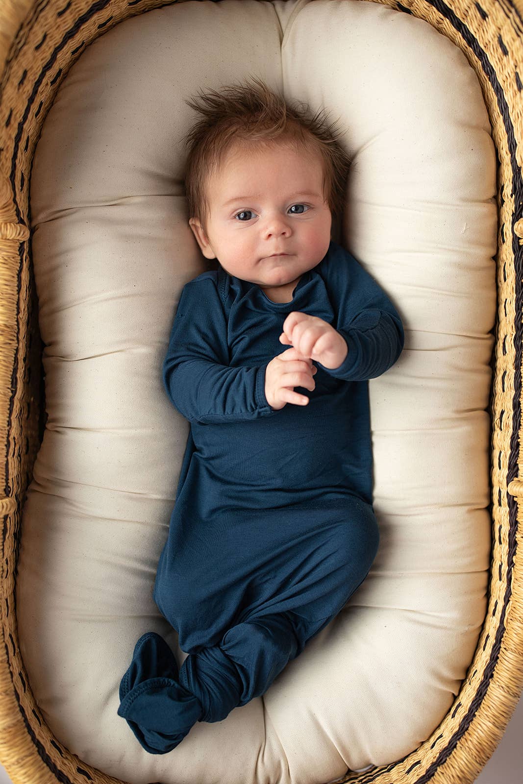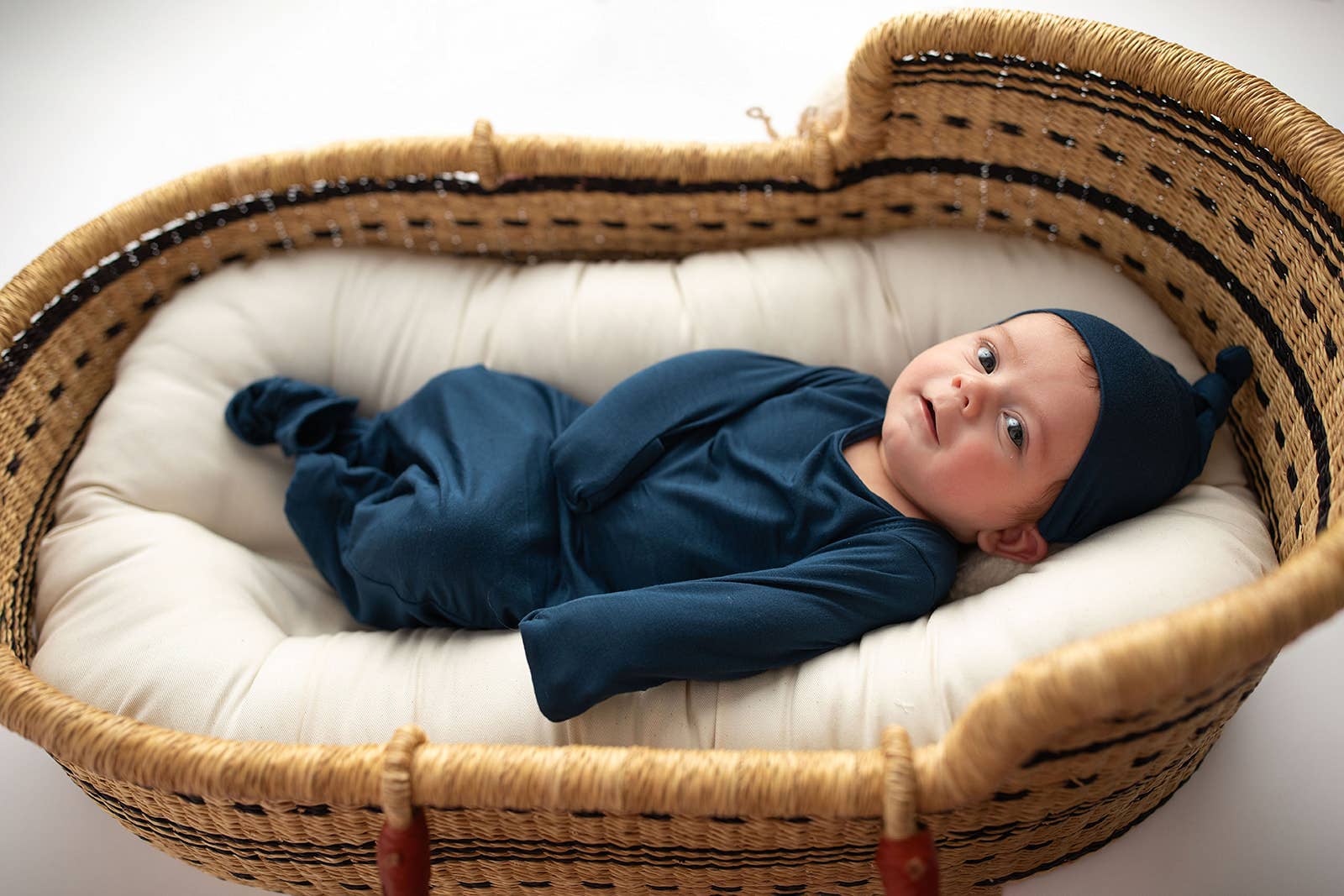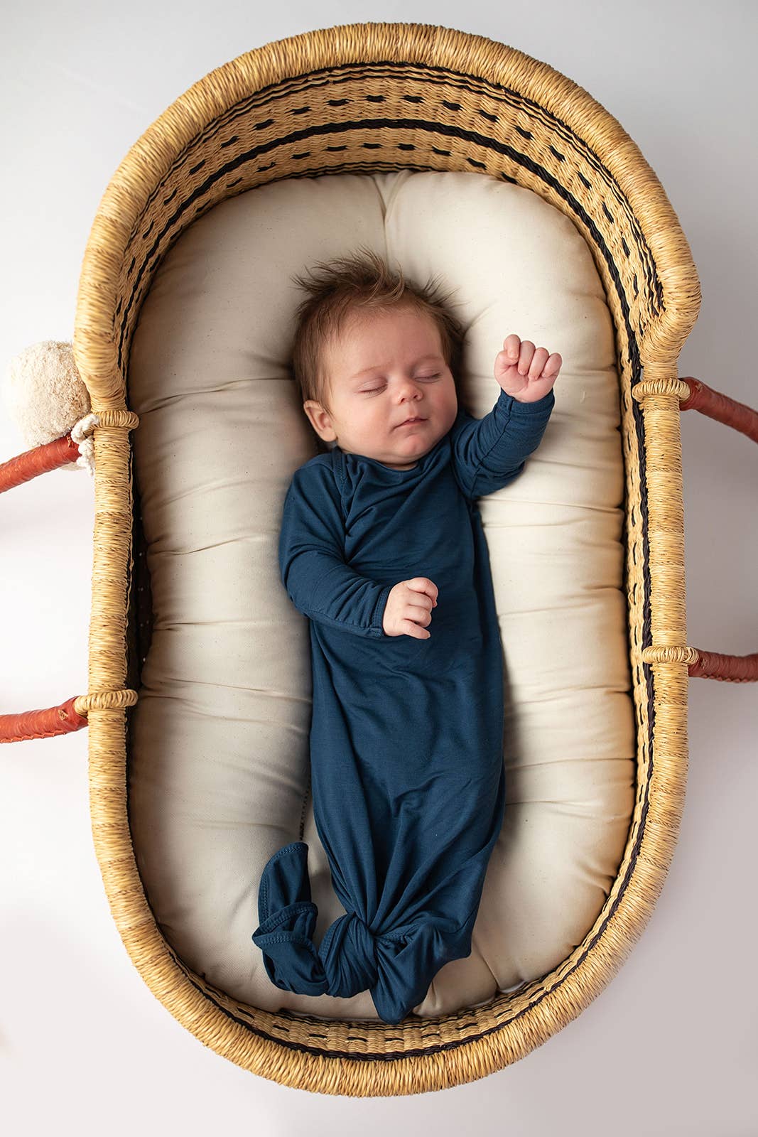 Knotted gowns are the perfect piece for those newborn life. Whether you are taking announcement photos, or dressing them for bed, you won't be disappointed. Knotted gown makes those overnight diaper changes super quick and easy. The length of the knot is adjustable to allow your baby to grow with the gown. This gown also features sleeves that flip over to turn into mittens.
